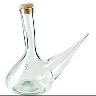 Recipiente tradicional de vidrio, característico de la cultura vinícola española, dotado de una cámara central esférica conectada a dos tubos que forman aproximadamente 90°: uno de boca ancha para rellenar y otro cónico con apertura estrecha para beber. Su diseño permite que el vino fluya por gravedad sin necesidad de contacto bucal con el vidrio, lo que lo convierte en un instrumento ideal para compartir vino entre varios comensales de forma higiénica y social.