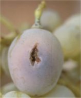 Daños en la vid. En los granos de uva, las puestas de huevo dejan un punto necrótico rodeado de un halo blanquecino característico. Las larvas y adultos se alimentan en la superficie foliar de las bayas, ocasionando manchas plateadas que evolucionan a color marrón. Estos daños proliferan en zonas de contacto entre granos o entre el grano y las hojas. Con el engrosamiento de las uvas, las heridas pueden agrietarse, facilitando la entrada de patógenos de podredumbre ácida y botrytis cinerea.